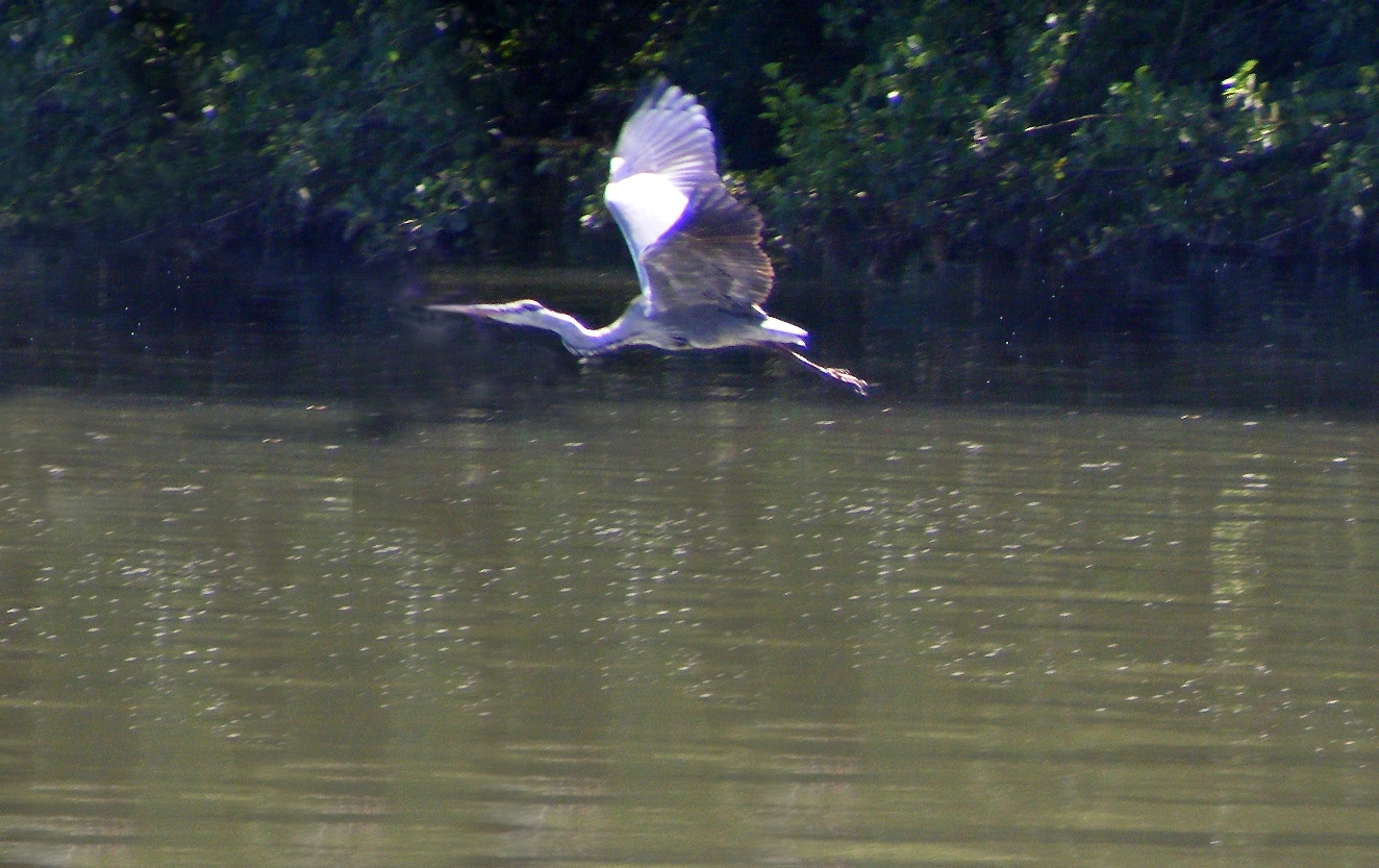 Héron en vol en fin d'aprés-midi vers l'île du Carosse